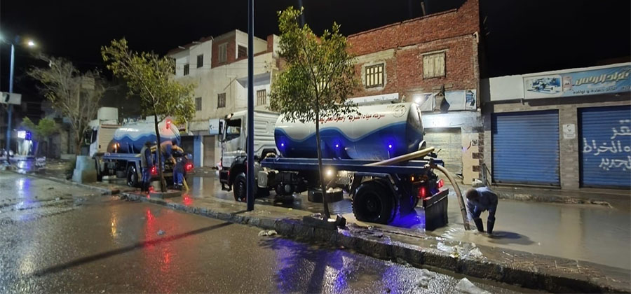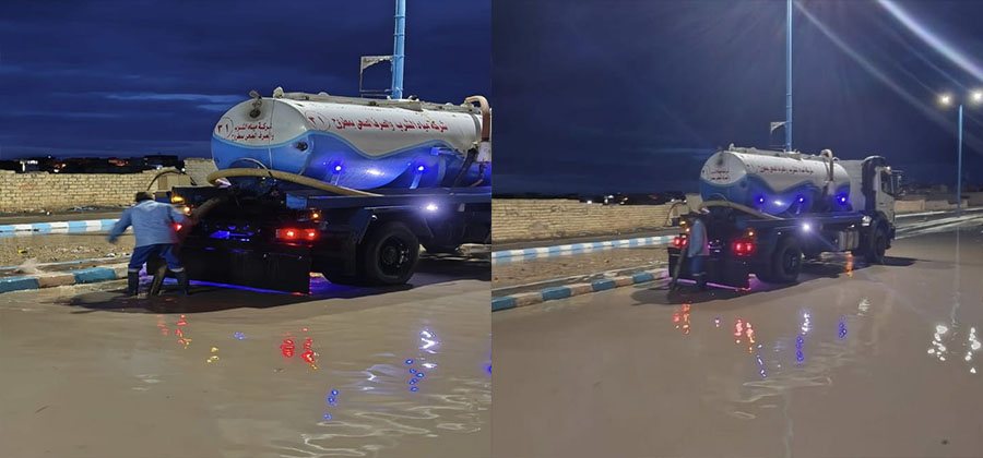 الصحي بمطروح، اعمال إزالة تراكمات مياه الأمطار بمختلف مواقع المدينة، تم تنفيذ خطة