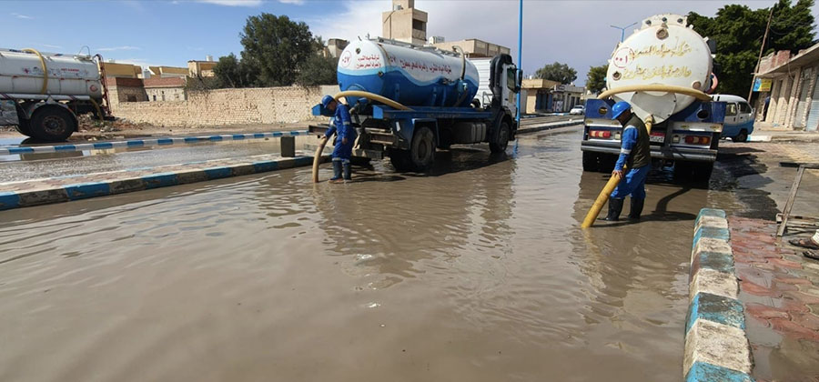 مستخدمةً السيارات والمعدات لضمان إزالة المياه المتراكمة بأسرع وقت ممكن. لم تكن هذه