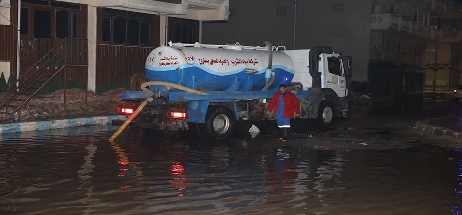 رئيس شركة مياه مطروح يتفقد أعمال ازالة تجمعات مياه الأمطار بالمدينة