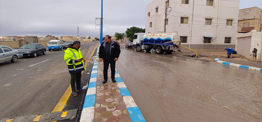 الصحي بمطروح بمجهودات لإزالة تجمعات مياه الأمطار بسرعة وفعالية.