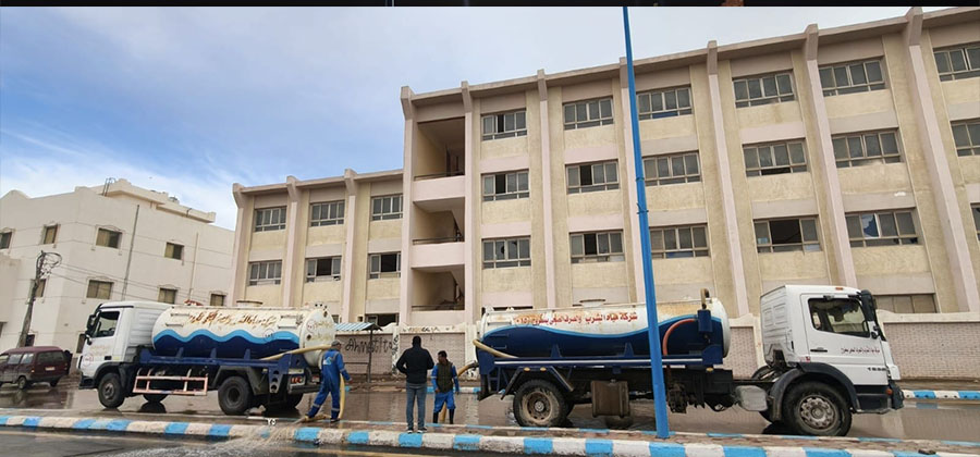 الصحي بمطروح، اعمال إزالة تراكمات مياه الأمطار بمختلف مواقع المدينة، تم تنفيذ خطة